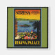 Från en reseetikett för Regina Hotel i Stressa Italien. Färga trädgårdar fyllda med blommor som förbiser ett djupt blått hav.