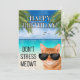 Sprid skratt, kattdjur charm och födelsedagstjuv med detta hälsningskort. Med foto av en orange tabby katt med solglasögon och avslappning på stranden. Det perfekta sättet att ge glädje till någons speciella dag. Den humoristiska frasen "stressa inte meowt" med katttemat lägger till en extra lagrar av underhållning och skapar detta kort som ett utmärkt val för dem som uppskattar ett bra skratt. Kortet har en tom sida som gör att du kan lägga till ett personlig-meddelande. Det är perfekten blandning av humor, kreativitet och firande. Ordna din i dag och få redo att göra någons födelsedag till ett oförglömligt tillfälle fyllt med skratt och lycka.