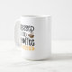 Trendy calligraphy text on coffee mug.