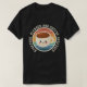 Denna roliga kaffedesign har en söt kawaii kopp kaffe på en vintage solnedgång bakgrund med citatet, "Stressed, salig och kaffe beroende."