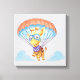 En giraffe med en fallskärm i påsatt kanvas. Ett av tre djur med fallskärm.