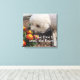 The design depicts a peaceful, free, happy and loving bichon taking time to smell the flowers.