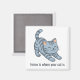 Cute cartoon illustration of a grey tabby cat having a good stretch. Customizable text.
