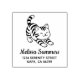 Cute cartoon illustration of a tabby cat having a good stretch. Customizable text.