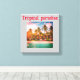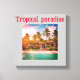 Den tropiska strandhotellkonstruktionen för strandduk, komplett med träd och löv. Detta fångar det centrala i en tropisk serensemester.