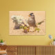 Bilden har en vit krona som står på sandig mark nära några små växter. Fågeln har ett klart svart och vitt, rand huvud, en gult och brun och grått-vadd. Bakgrunden är en suddig sandutbyggnad som antyder en strand- eller ökenmiljö. Spreaden visas som varning och fångas in i en naturlig utomhusinställning.