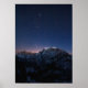 En magisk magi på ett kall vinter kväll. Majestätiska berg täckta av fullt av stjärnor i snö och himlar under natten.