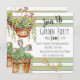 Anpassa den här trädgårdsfestinbjudan som innehåller en hängväxt och en kruksträng med pärlplanta. I bakgrunden hittar du kor i koppar och turkos, tillsammans med en söt stjärna. Lägg till information om party och ändra teckensnittet om du vill. På baksidan av kortet visas samma bild som på framsidan. Njut av party! Designad av mw1designsart.