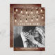 bröllop spara datum med Vintage edison ljus över en tegelbakgrund med anpassningsbar foto och text.