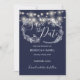Ett stilrent marinblått spara-datum-kort med fina strängljus och känsliga blomillustrationer på svart bakgrund. Anpassa med din speciella spara-datum-information. Designad av Thisisnotme©
