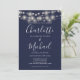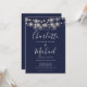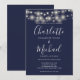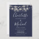 String Lights Navy Blue Elegant Script Bröllop Inbjudningar