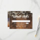 A rustic RSVP card featuring a western ranch mountains scene and string lights on a barn wood background, with your details set in stylish typography. Designed by Thisisnotme©