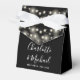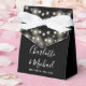 Elegant svart och vit bröllopspresentlåda med vackra strängljus, stilfull signatur skrift namn och speciellt datum i modern typografi. Du kan anpassa med ditt eget tackmeddelande under locket. Ett perfekt sätt att tacka dina gäster! Designad av Thisisnotme