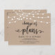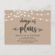 Det här är det minsta moderna Rustic Kraft String ljus, i svart teckensnitt, Bröllopsfest-inbjudan Omschemaläggs-vykort (senarelagt/senarelagt) (Ändra datum). Det är perfekten att lägga om meddelandet till dina vänner och familj.