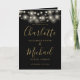 Svart och guld namnteckning skript-bröllopsprogram med söt string ljus och chic modern typografi. Bröllopsprogrammet snyggt kan vara personlig med speciell bröllopsdag. Designad av Thisisnotme©