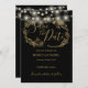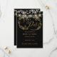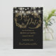 Ett svart och guld spara-till-datum-kort med snyggt-sträng ljus och delikata illustrationer av blommigt. Anpassa med din speciella spara-aktuella information. Designad av Thisisnotme©