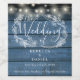 Med söt string ljus kan den här elegant bröllop-etiketten vara personlig med dina uppgifter i elegant som skrivs på en baksida av den roliga blå träplattan. Designad av Thisisnotme©