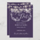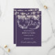 Ett spara för lila snyggt-till-datum-kort med söt string ljus och delikata illustrationer av blommigt på svart bakgrund. Anpassa med din speciella spara-aktuella information. Designad av Thisisnotme©