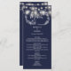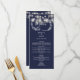 Med söt string ljus och handritade bilder av rustik blommigt, anpassar du snyggtens marina blåmeny med din speciella menyinformation för bröllopsdag. Designad av Thisisnotme©