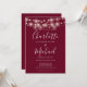 Elegant burgundy namnteckning bröllopsinbjudan med söt string ljus och namnteckning stil namn, den här snyggtens bröllopsinbjudan kan vara personlig med din information i chic, vitt brev. Designad av Thisisnotme©