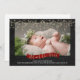 String Ljus Chalkboard Photo Birth Anouncement Cute vinternyfödd baby bild födelseattest för att presentera din lilla annons för vänner och familj. Med en illustration av den gyllene glitter-strängen ljus gräns med välkomstsidan till världsbanderollen med framstående rött. Anpassa kortet med vikt, längd och datum för din baby födelse. Anpassa kortet ytterligare med ett meddelande om personlig på baksidan av kortet eller lämna det som med ett sött citat från Penelope Leach. Färg omfattar svart, guld, rött och vitt.