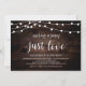 Vackert inget Finare, Just Kärlek, Bröllop Elopement annons/partiinbjudningskort, i Modern rustik design, Farm String Ljus, pappert tema för träbrun . Det här är perfekt för ditt bröllopsmottagande och party efter bröllop firande. Lägg till information i matchande teckensnitt/text. #TeeshaDerrick