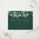 En elegant namnteckning skript-OSA kort med söt string ljus och modern guld-typografi på en framväxande grönt. Den omvända informationen innehåller din information och en förfrågan från roligt gäst sång. Designad av Thisisnotme©