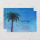Ett stort handflatan träd som tänds med stränger ljus accentuerar detta tropiska svarskort på en vattenskörning, blå bakgrund, skapar perfekten för destinationen, Karibien, Hawaiian, Florida, tropisk, poolside, sommartid eller badbröllop. Samordningsobjekt finns i samlingen String Ljus Handflatan Träd Bröllop. Om du behöver ytterligare uppgifter kontaktar du oss med din förfrågan på prettyfancyinvites@gmail.com