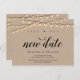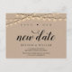 Det här är den moderna minsta rensa strängen ljus, Kraft-designtemat, i svart teckensnitt, Bröllopsfest-inbjudan Omschemaläggs-vykort (senarelagt/senarelagt) (Spara vårt nya datum). Det är perfekten och eleganten som gör det möjligt att lägga om meddelandet till vänner och familj.