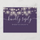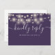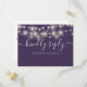 En elegant namnteckning skriptOSA kort med söt string ljus och modern typografi på lila. Den omvända informationen innehåller din information och en förfrågan från roligt gäst sång. Designad av Thisisnotme©