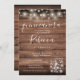 En rustik Quinceañera 15-årsinbjudan med söt string ljus och Mason burk med snyggt-skripttypografi, på en rustik träbakgrund. Designad av Thisisnotme©