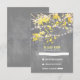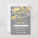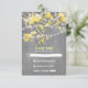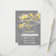 Svarskort från grått och Gult Rustic bröllop med glatt sträng ljus hänger på det blomstrande träd grenar.