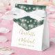 Elegant emerald grönt och guld bröllopsruta med söt string ljus, snyggt namnteckning skript namn och speciellt datum angivet i chic typografi. Du kan anpassa dig med ditt eget tackmeddelande under locket. Ett perfekt sätt att tacka gästerna! Designad av Thisisnotme©