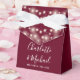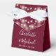 Elegantens burgundära bröllopsförmånslåda med söt sträng ljus, snyggt namnteckning skript namn och speciellt datum angivet i modern typografi. Du kan anpassa det med ditt eget tackmeddelande under locket. Ett perfekt sätt att tacka gästerna! Designad av Thisisnotme©