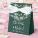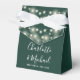 Elegant emerald grönt bröllopsruta med söt sträng ljus, snyggt namnteckning skript namn och speciellt datum angivet i modern typografi. Du kan anpassa dig med ditt eget tackmeddelande under locket. Ett perfekt sätt att tacka gästerna! Designad av Thisisnotme©