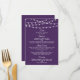 Strängen ljus på lila bröllop är en enastående elegant som har en underbar vit hängsträng ljus på lila bakgrund, vilket är perfekt för alla moderna bröllop firande. De här menykorten kan vara personlig för ditt speciella tillfälle och skulle göra perfekten till bröllop, möhippa, förlovningsfest, födelsedagsfest och många fler specialtillfällen. Lägg till anpassningsbarnas ordalydelse i den här designen genom att använda rutorna "Redigera den här designmallen" på objektets höger eller klicka på den blå "Anpassa den" om du vill ordna texten, ändra typsnitt och färg och även lägga till ytterligare information om bilder i den här designen.