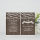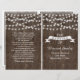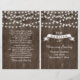Sträng med ljus och vintage på den gamla tidningen stil bröllop och party på den gamla tidningen Somme, med en vit banderoll med brun kontur på den gamla bruna träbakgrunden. Denna moderna och trendig bröllop-träkonstruktion med vintage inslag ingår i en uppsättning eller samling av bröllop, är fullt anpassade och är perfekt för en utomhussommarnattsaga western bröllop. Observera att det inte finns något riktigt trä bara för tryckt bilder. Du måste vika i mitten för att få ett hopfogat program. Välj bara den pappra värdetypen när den viks väl.