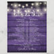 Den här roustiska strängen ljus bröllop schema-tidslinje kan vara personlig med dina bröllop-detaljer som anges med chic-vita bokstäver på bakgrunden till en lila träpaneler. Designad av Thisisnotme©