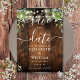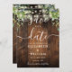 Den här eleganten som binder ljus, rustic lador med greenery boho bröllop-the-date card kan vara personlig med dina uppgifter i chic typografi. Designad av Thisisnotme©
