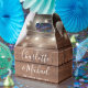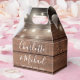 Rustik bröllopsförmånslåda med söt sträng ljus, chic namnteckning skript namn och speciellt datum på träpanelens bakgrund. Du kan anpassa dig med ditt eget tack till ditt meddelande på motsatt sida. Ett perfekt sätt att tacka gästerna! Designad av Thisisnotme©