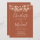 Elegant terracotta namnteckning en bröllopsinbjudan med söt sträng ljus och namnteckning stil namn, den här snyggtens bröllopsinbjudan kan vara personlig med dina uppgifter i chicens vita bokstäver. Designad av Thisisnotme©