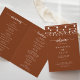 Bröllopsprogrammet ljus teracotta vikt är perfekt för ett klassiskt bröllop. Utformningen har en vacker, handmålad ljus i terracotta-bakgrund. Inkludera ett citattecken eller ett kort-meddelande, serviceordning, bröllopsfest och tackmeddelande.