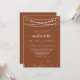 Strängen ljus teracotta nuestra boda bröllopsinbjudan är perfekt för ett klassiskt bröllop. Utformningen har en vacker, handmålad ljus med fantastiska stjärnor i terracotta-bakgrunden.