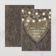 String Ljus + Oak Träd Bark Bröllop OSA Cards - har ett karvat hjärta, sträng ljus och mycket små ljus som är spridda överst. Bakgrunden har en bakgrund av ekbarken träd. Se matchningssamlingen för fullt nedan.