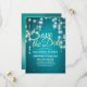 Spara datumsymbolerna för inbjudningskortet för bröllopet - Eleganten Faux guldgolv spara datumskriptet och Vintagen String Ljus med Turcos Blue Glitter Gnistra Background. En Perfekt för din stora dag! Alla textstorlekar i Stil, Färg kan anpassas efter dina behov.