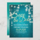 Spara datumsymbolerna för inbjudningskortet för bröllopet - Eleganten Faux guldgolv spara datumskriptet och Vintagen String Ljus med Turcos Blue Glitter Gnistra Background. En Perfekt för din stora dag! Alla textstorlekar i Stil, Färg kan anpassas efter dina behov.