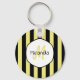 Säg hej till sommaren med den här grundläggande nyckelkedjan i ett trendig svart och gult-grönt lodrät mönster som en gurkbete. Anpassa genom att lägga till ditt namn och inledande monogrammet. Detta är en del av Mönster-sommarserien som är designad av OjOsoGo Boutique.