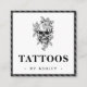 Stripe Grått Gothic & Blommigt Skull Tattoo Artist Fyrkantigt Visitkort