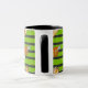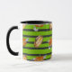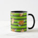 I mugg finns vattenfärgskopior och jack av lyktor där spöken kommer ut på en grönt av roligt och grått stripe-bakgrund av mörk. Perfekt för Spooky Season kaffe eller hett te!