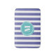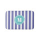 Söt och trendig badmat i rand i blå violett skugga) och vit stripe mönster med ditt monogram inuti en abstrakt akvafblå cirkel. Enkel att anpassa genom att klicka på knappen Anpassa.